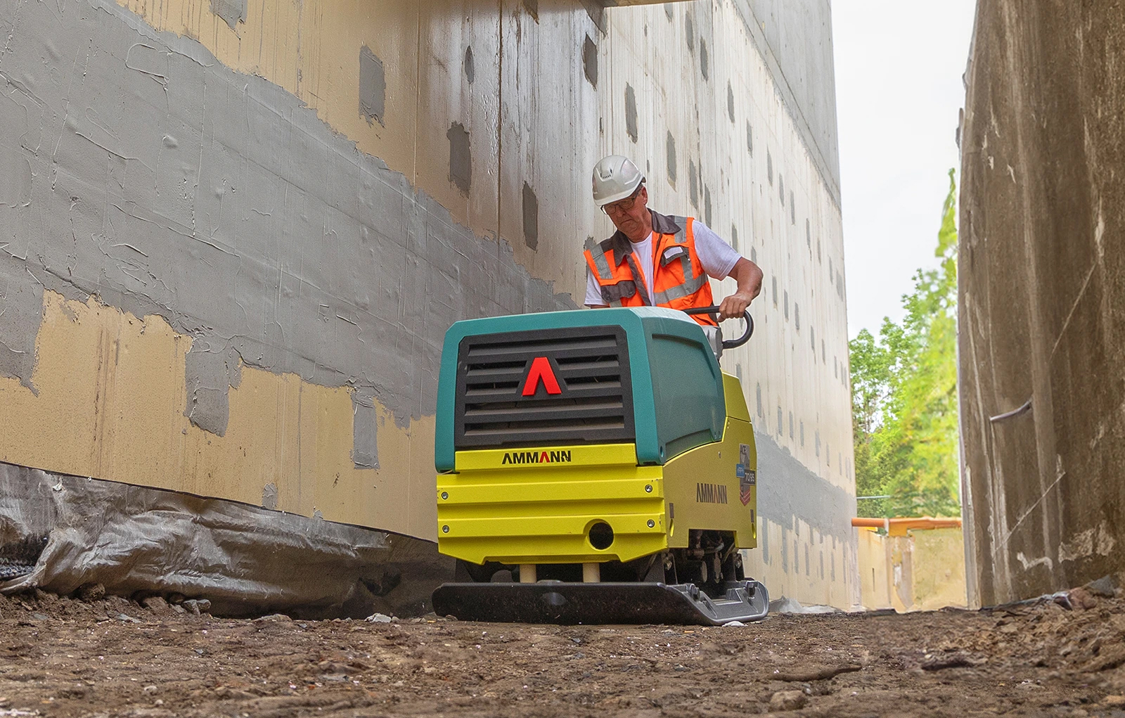 Die reversierbare Ammann-Rüttelplatte APR 52/75 punktet mit hervorragender Manövrierfähigkeit und einem kraftvollen 8,2 KW-Motor, der Steigungen bis zu 30 Prozent locker bewältigt. Bei einem Gewicht von 365 Kilo bringt sie es auf eine Zentrifugalkraft von 52,5 kN. Die große Schwester APR 58/75 erreicht eine Zentrifugalkraft von 58 kN bei einem Maximalgewicht von 418 Kilo.
